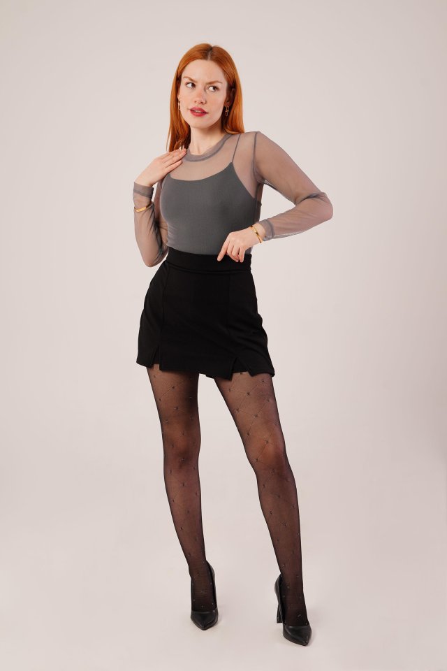 Modelin Ölçüleri: Boy:165, Kg:55, Göğüs:90, Bel:72, Kalça: 100