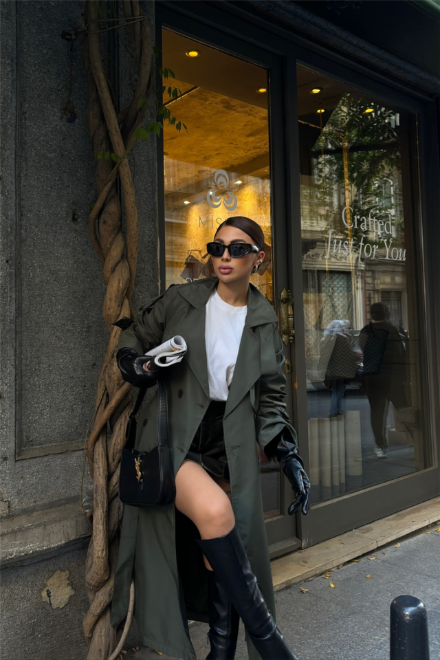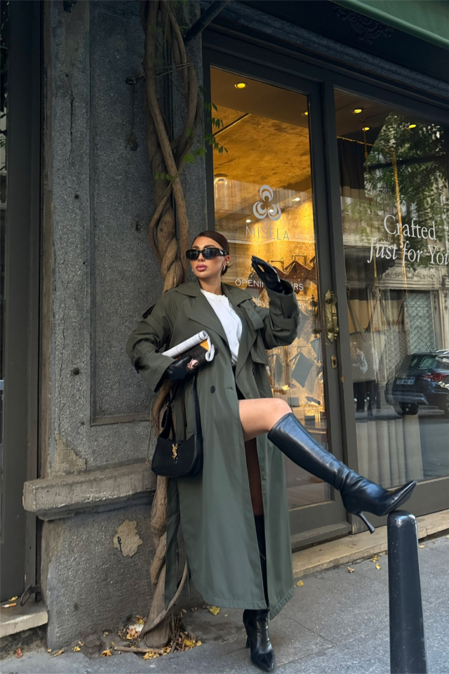 TRENCH YANDAN YIRTMAÇ DETAYLI - Haki