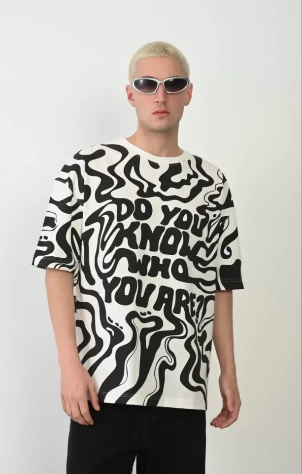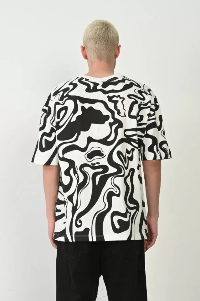 Unisex Baskılı Bisiklet Yaka Oversize T-Shirt - Beyaz