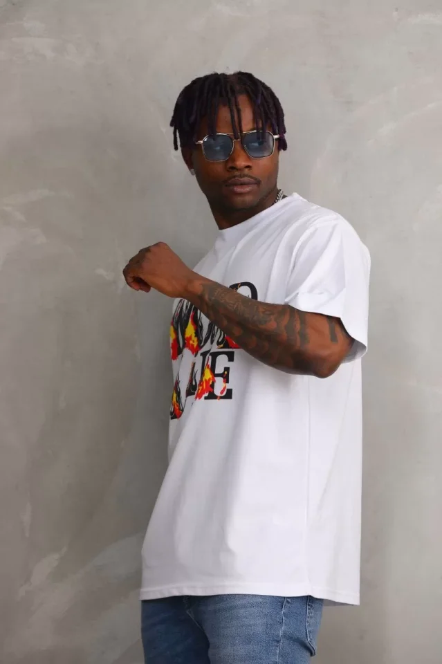 Anasayfa Erkek Unisex Baskılı Oversize T-Shirt - Beyaz