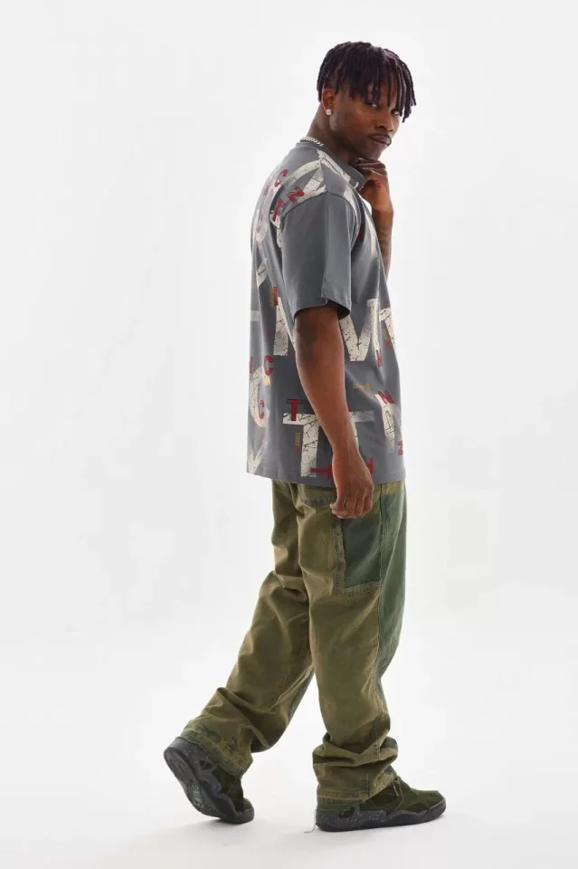 Unisex Baskılı Oversize T-Shirt - Füme