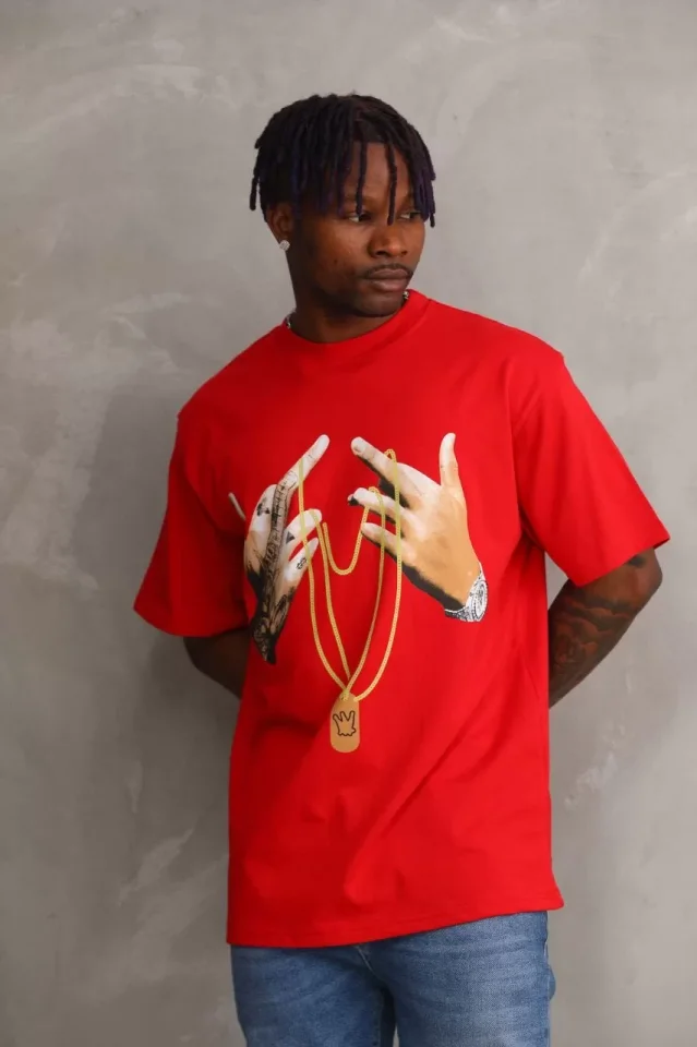 Unisex Baskılı Oversize T-Shirt - Kırmızı