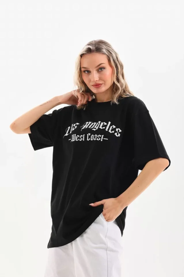 Unisex Baskılı Oversize T-Shirt - Siyah