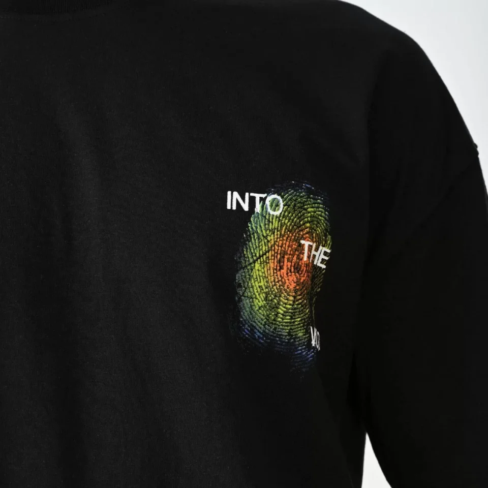 Anasayfa Erkek Unisex Bisiklet Yaka Baskılı Oversize T-Shirt - Siyah