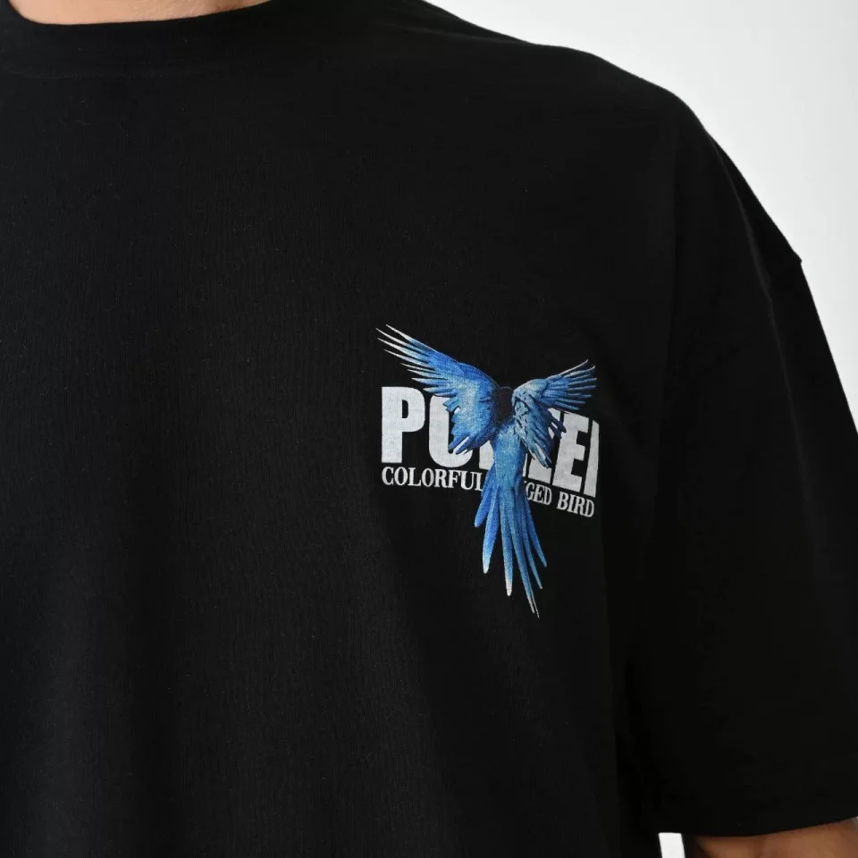 Anasayfa Erkek Unisex Bisiklet Yaka Baskılı Oversize T-Shirt - Siyah