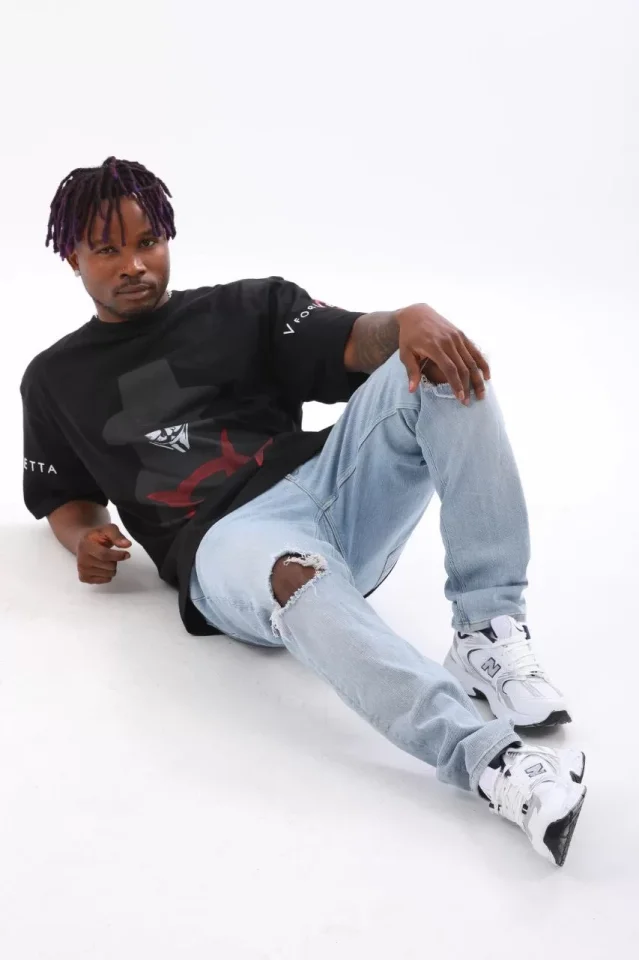 Unisex Oversize Baskılı Bisiklet Yaka T-Shirt - Siyah