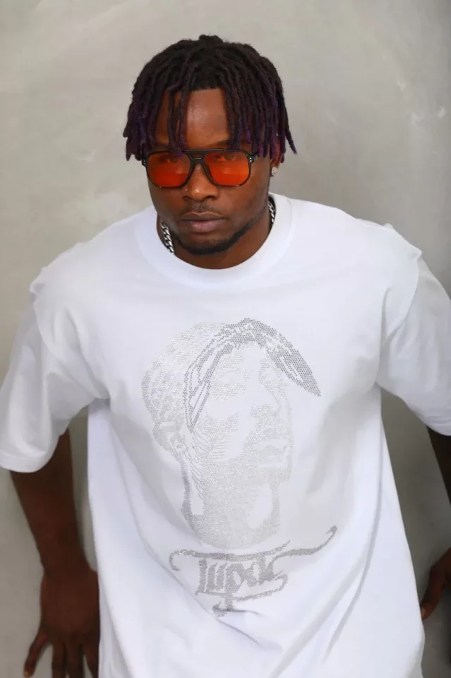 Unisex Oversize Taşlı Bisiklet Yaka T-Shirt - Beyaz