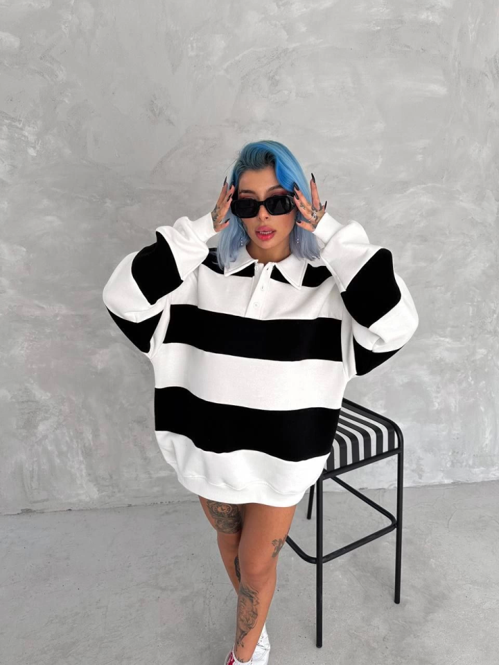 Unisex Üç İplik Parçalı Yakalı SweatShirt - Siyah