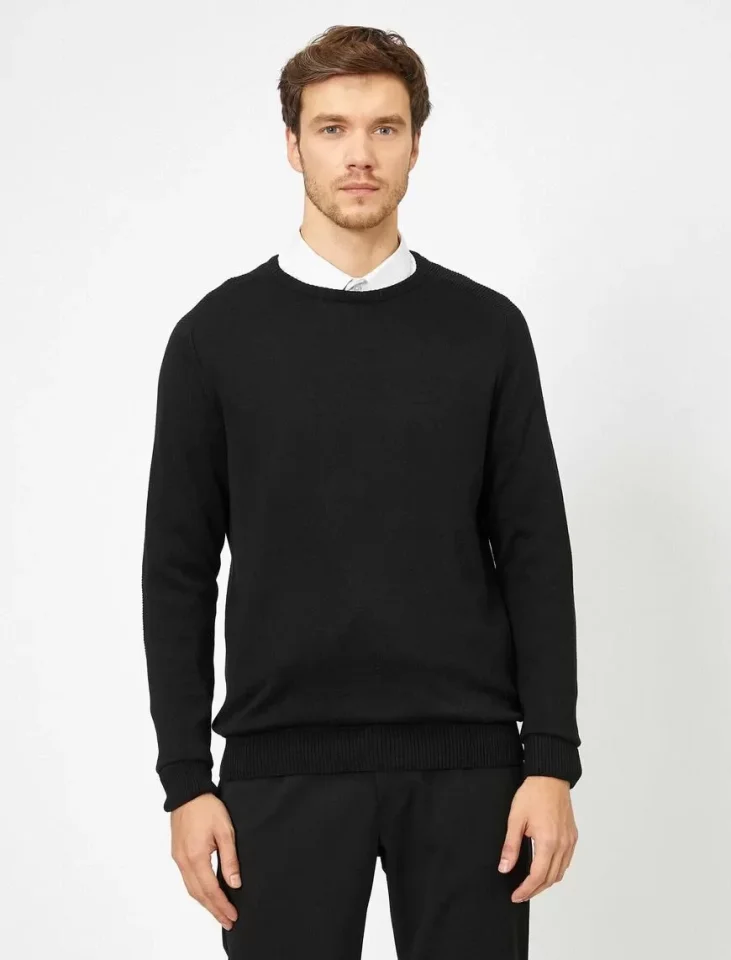 Unisex Uzun Kol Biskilet Yaka Dokuma Triko - Siyah