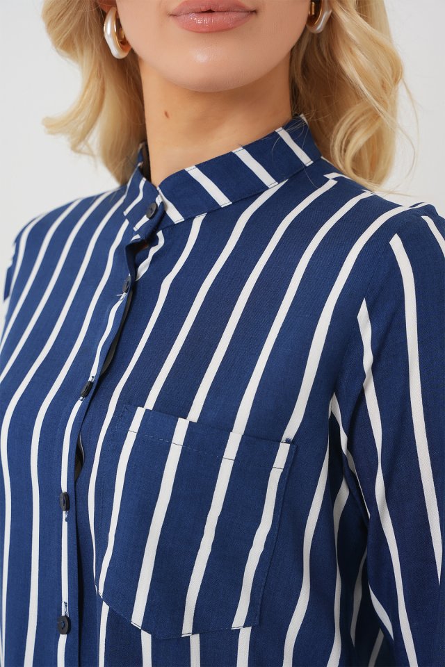 Uzun Kollu Çizgili Gömlek 20283 - A.Lacivert