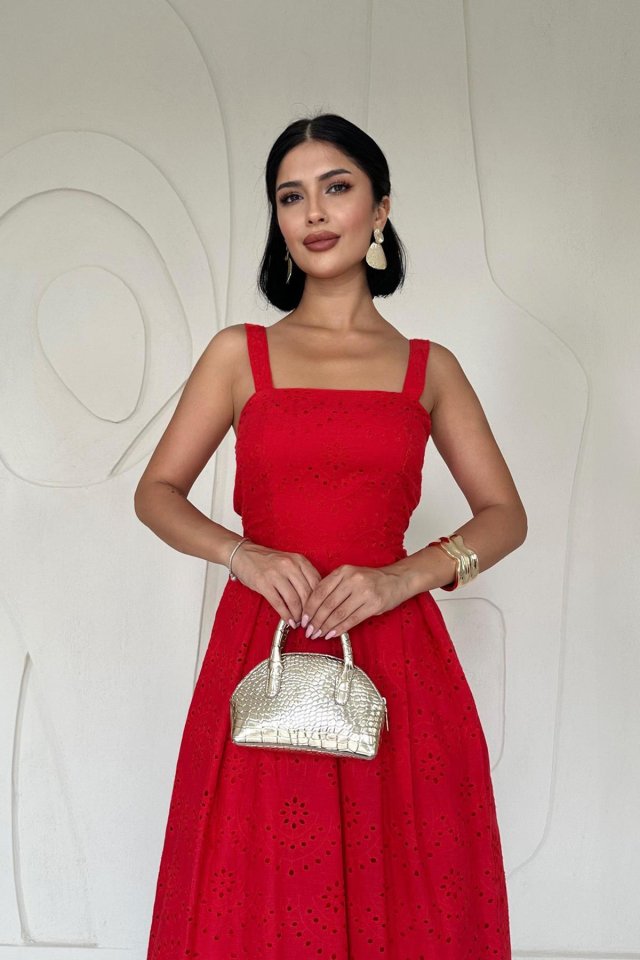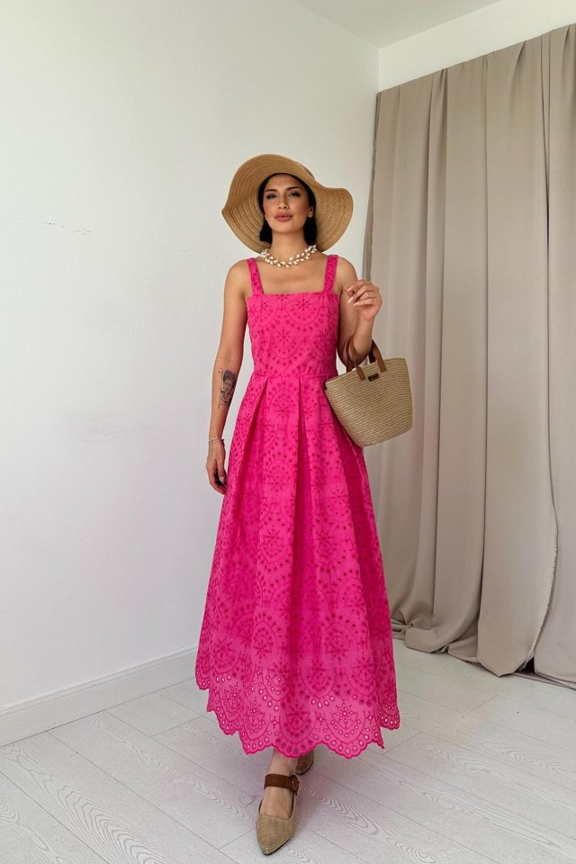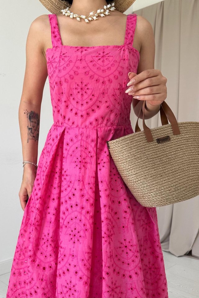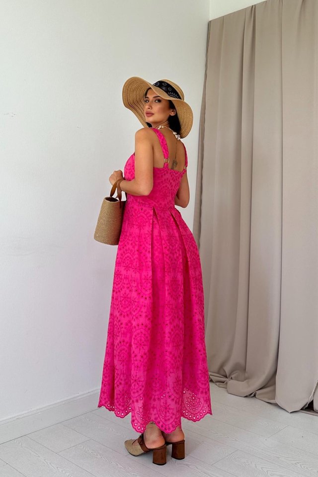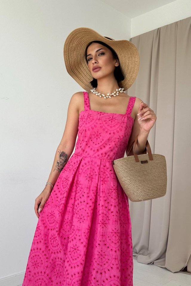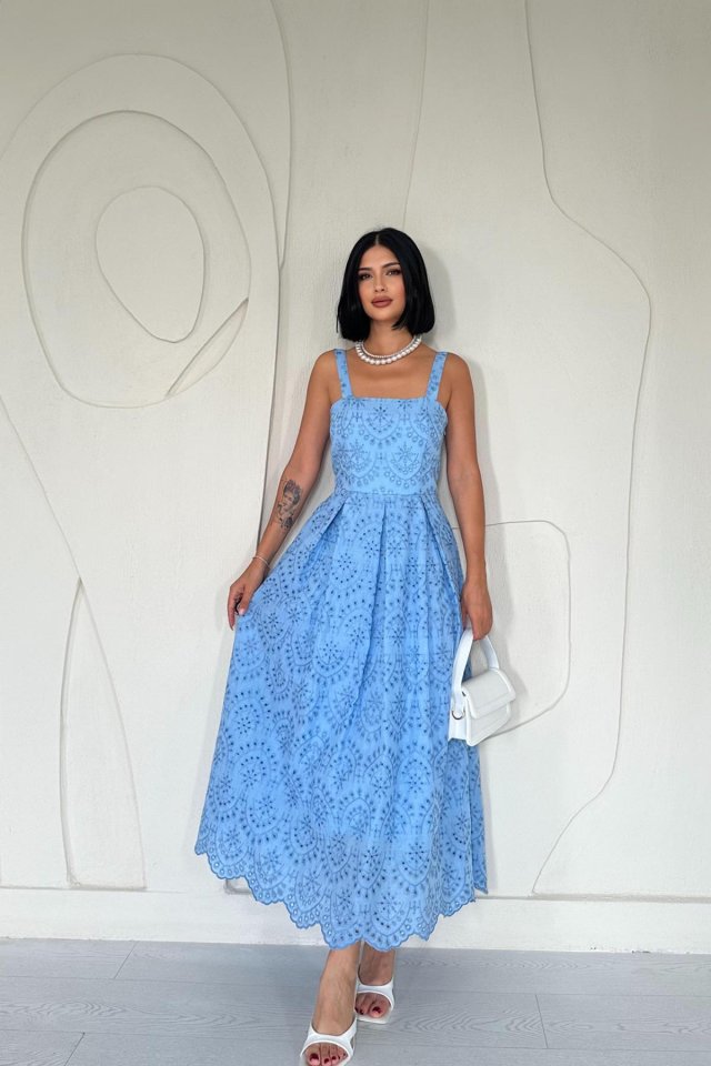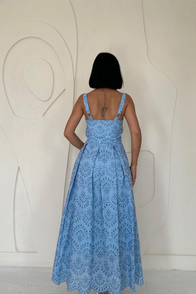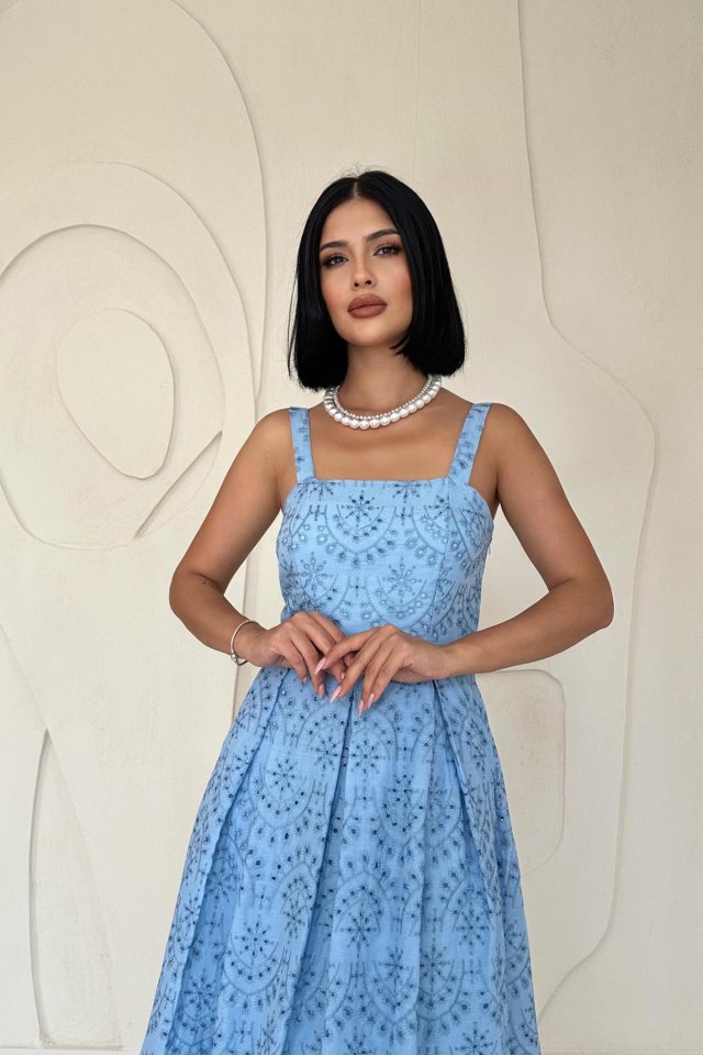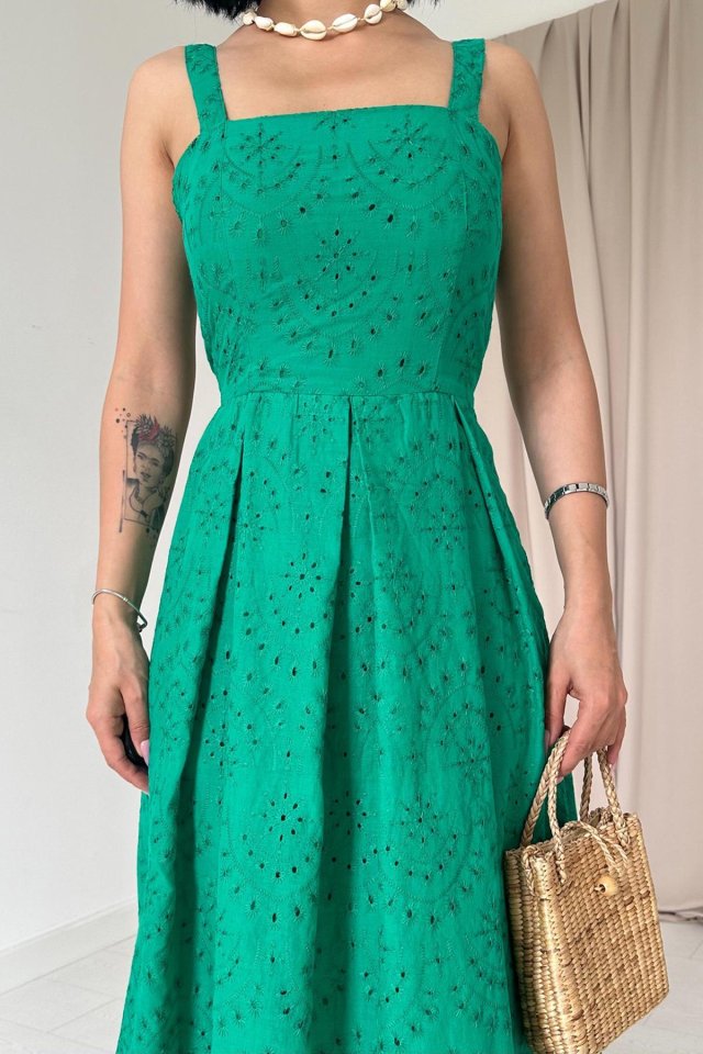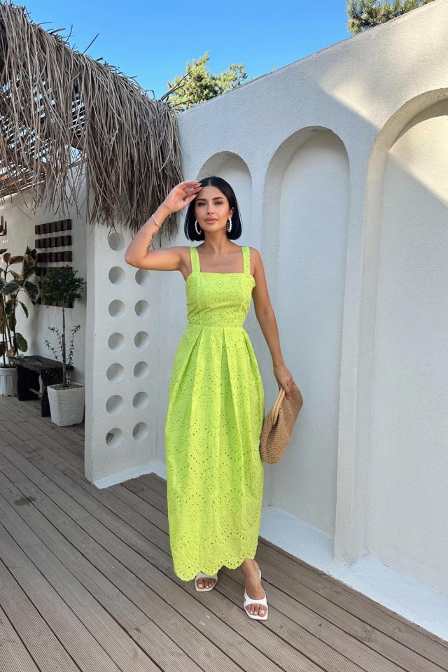 Yağ Yeşili Askılı Aparatlı Brode Elbise