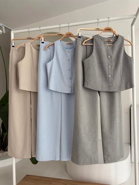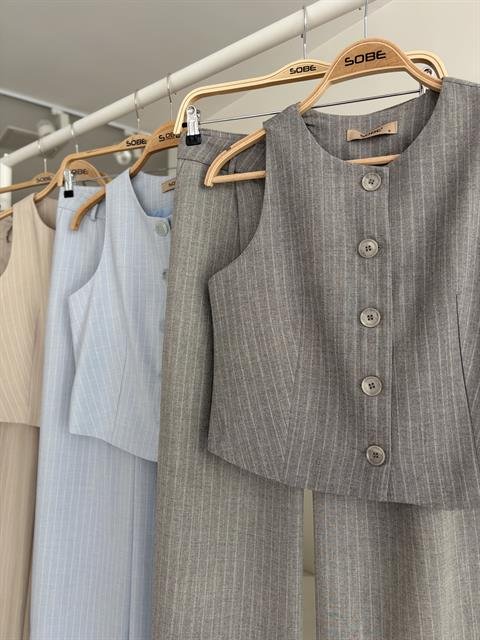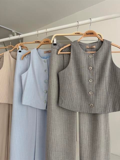 Yelek Plazzo Pantolon Çizgili Flamlı Poliviscon Takım 10178
