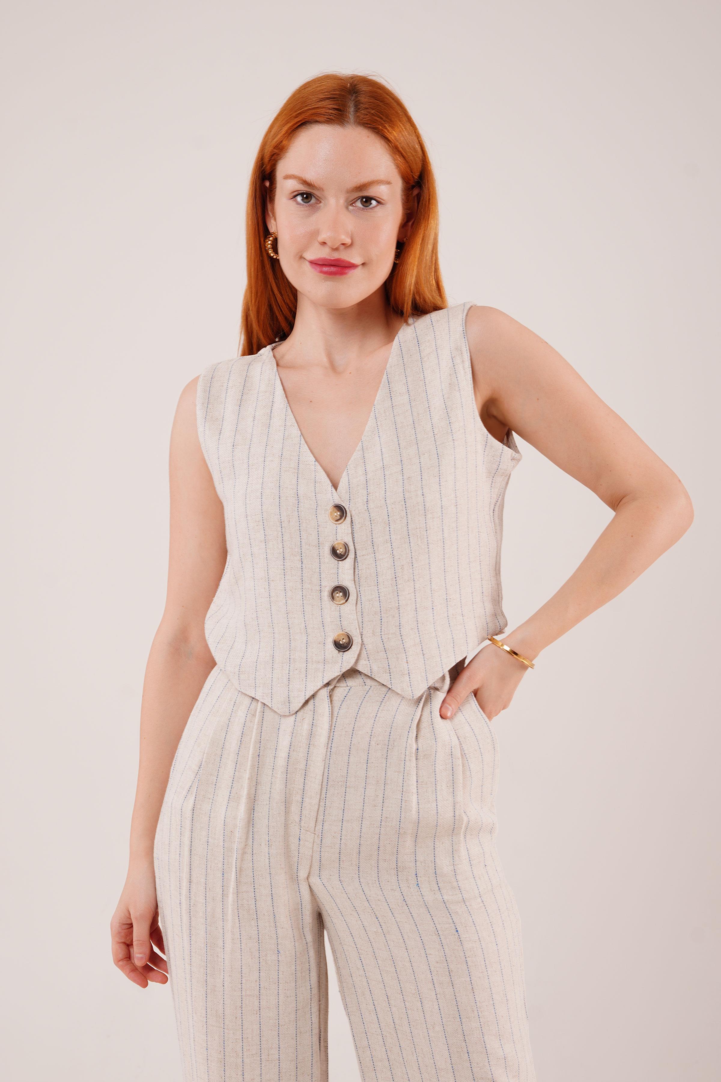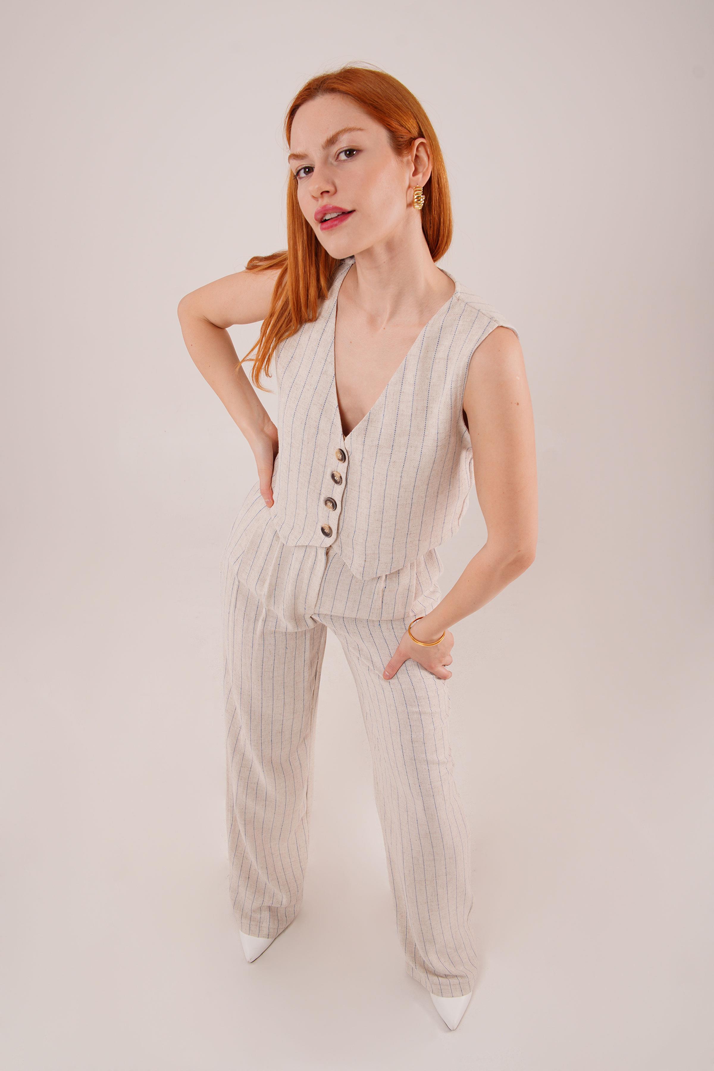 Yelek Ve Pantolon Mavi Şeritli İkili Takım